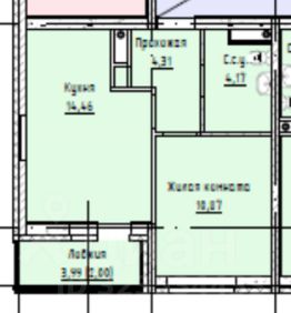 Планировка квартиры функциональна, каждый метр используется по назначению. В прихожей ниша под вместительный встроенный шкаф, большой санузел, спальня 10 кв.метров. Кухня-гостиная 14.6 с выделенными зонами: ниша под кухонный гарнитур, два окна - одно прекрасно подойдет под обеденную зону. Из гостиной выход на большую и просторную лоджию.