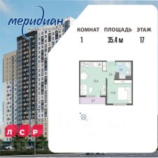Квартира располагается на 17 этаже 24-этажного дома в ЖК Меридиан.
