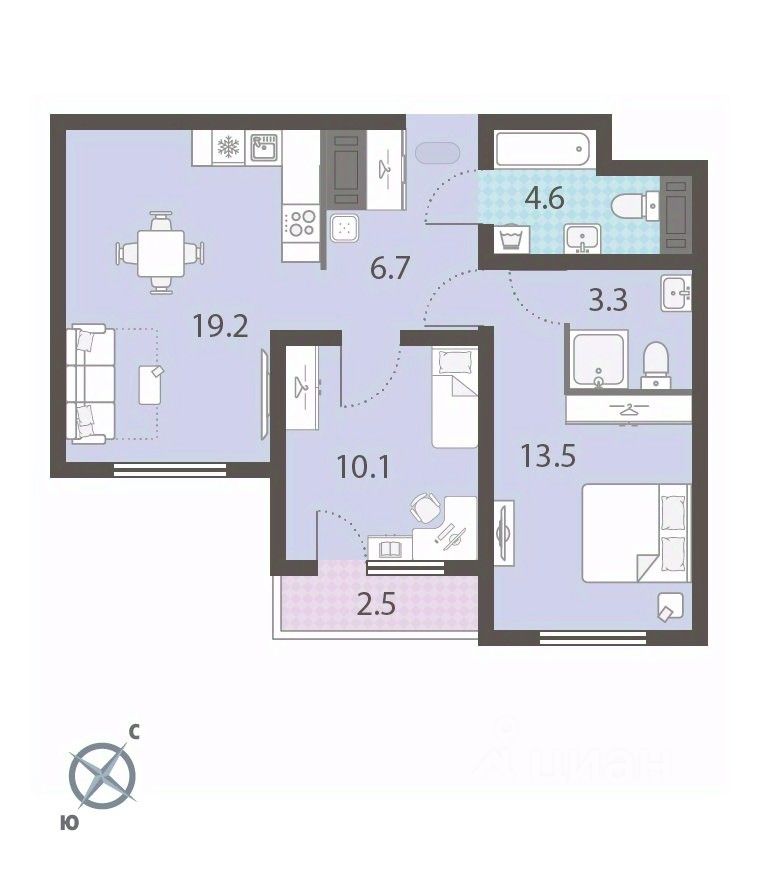 Квартира располагается на 19 этаже 25-этажного дома в ЖК Малахит.