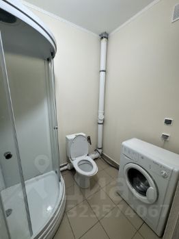 Санузел: Совмещенный санузел с душевой кабинкой, раковиной, зеркалом со шкафчиком и стиральной машиной.