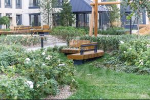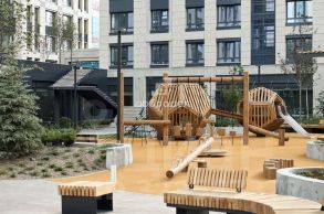Оборудованная детская площадка с современными игровыми комплексами, зоны для отдыха и прогулок, спортивные площадки, видеонаблюдение, круглосуточная охрана, закрытый двор, придомовая парковка, паркинг.