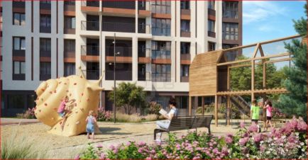 Закрытый двор без машин, современный стандарт детской и общественной безопасности на всей территории дворовых пространств. Спортивные площадки для всех возрастов, качели необычных форм и гранд-песочница для малышей.