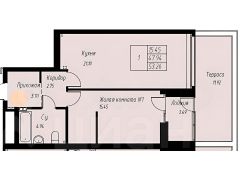 Евродвушка с террасой общей площадью 62,7 (площадь квартиры 47,9м2+площадь лоджии 3,4м2+площадь террасы 11,4м2),