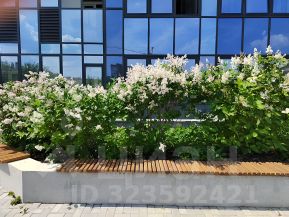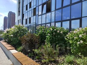 Квартира расположена на третьем этаже 35-этажного здания, окна выходят на восточную сторону. Под окнами вокруг террасы организована зеленая зона с ландшафтным дизайном, посажены декоративные кустарники.
