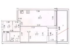кухня-гостинная 21,2м2, комната 15,3м2.