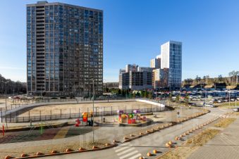 + зеленый просторный двор, свое футбольное поле, зимой превращающееся в каток, волейбольная площадка, зоны для воркаута, детские площадки с безопасным покрытием, прогулочные аллеи