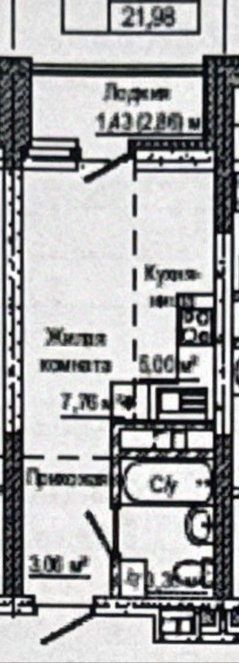 Квартира - студия с отделкой "под ключ": натяжной потолок, ламинат, обои, плитка в санузле (унитаз, раковина).