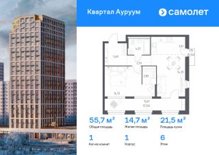 Строим кварталы для жизни с заботой о будущем. Предлагается 1-комнатная квартира бизнес-класса 55,7 кв.м в корпусе 1 на 6 этаже, в ЖК "Квартал Ауруум"