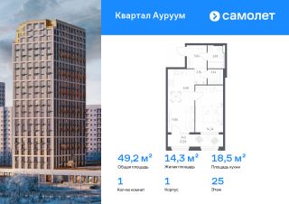 Строим кварталы для жизни с заботой о будущем. Предлагается 1-комнатная квартира бизнес-класса 49,2 кв.м в корпусе 1 на 25 этаже, в ЖК "Квартал Ауруум"