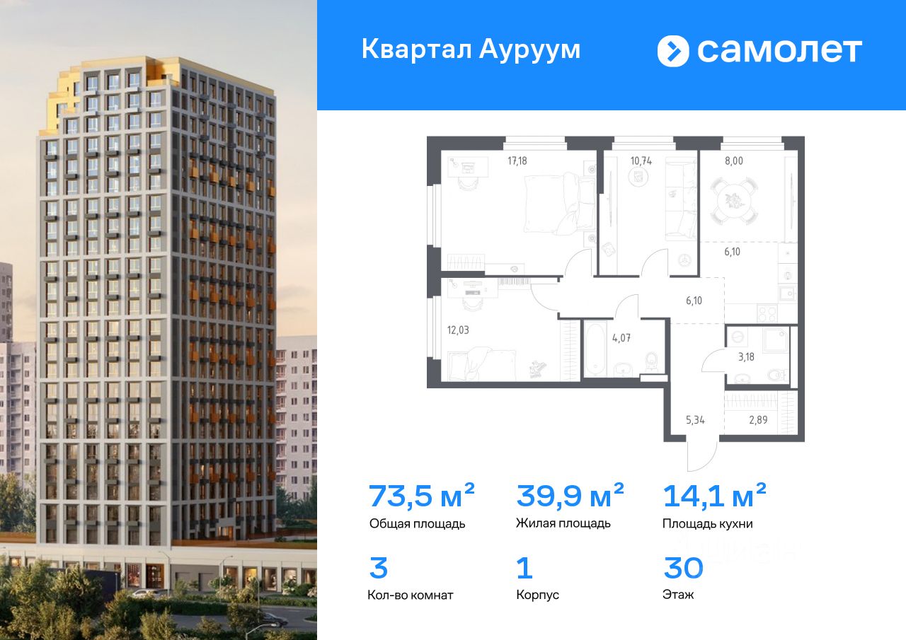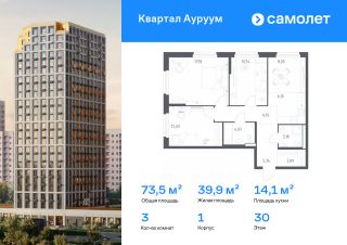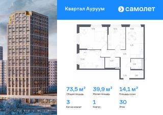 Строим кварталы для жизни с заботой о будущем. Предлагается 3-комнатная квартира бизнес-класса 73,5 кв.м в корпусе 1 на 30 этаже, в ЖК "Квартал Ауруум"