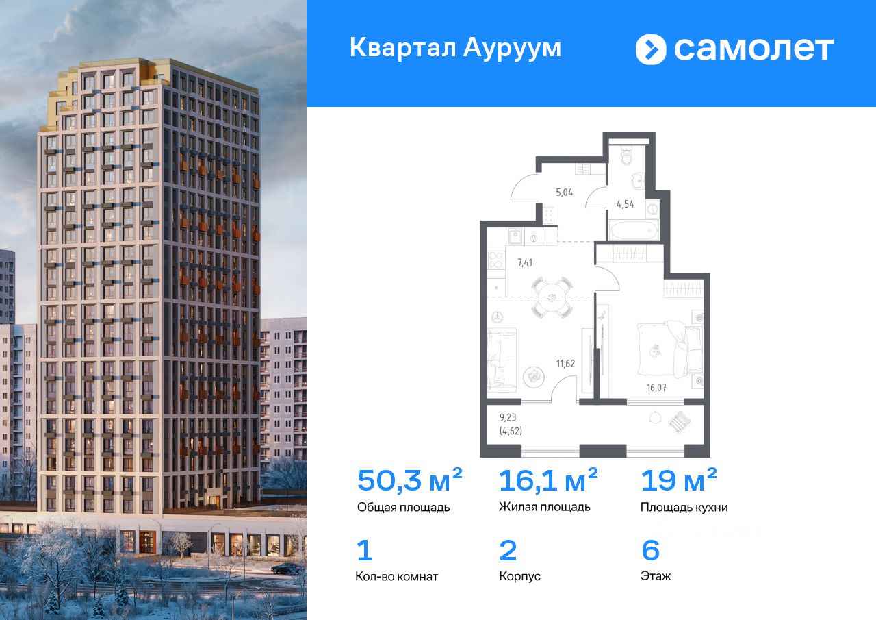 Строим кварталы для жизни с заботой о будущем. Предлагается 1-комнатная квартира бизнес-класса 50,3 кв.м в корпусе 2 на 6 этаже, в ЖК "Квартал Ауруум"