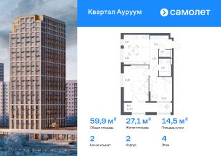 Строим кварталы для жизни с заботой о будущем. Предлагается 2-комнатная квартира бизнес-класса 59,9 кв.м в корпусе 2 на 4 этаже, в ЖК "Квартал Ауруум"