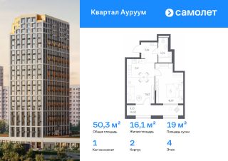 Строим кварталы для жизни с заботой о будущем. Предлагается 1-комнатная квартира бизнес-класса 50,3 кв.м в корпусе 2 на 4 этаже, в ЖК "Квартал Ауруум"