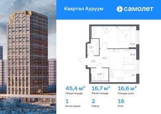 Строим кварталы для жизни с заботой о будущем. Предлагается 1-комнатная квартира бизнес-класса 45,4 кв.м в корпусе 2 на 16 этаже, в ЖК "Квартал Ауруум"
