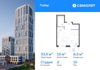 Строим кварталы для жизни с заботой о будущем. Предлагается квартира студия комфорт-класса 33,88 кв.м в корпусе 2 на 10 этаже, в ЖК "Пайер"