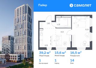 Строим кварталы для жизни с заботой о будущем. Предлагается 1-комнатная квартира комфорт-класса 39,19 кв.м в корпусе 1 на 14 этаже, в ЖК "Пайер"