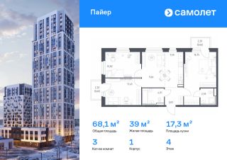 Строим кварталы для жизни с заботой о будущем. Предлагается 3-комнатная квартира комфорт-класса 68,06 кв.м в корпусе 1 на 4 этаже, в ЖК "Пайер"