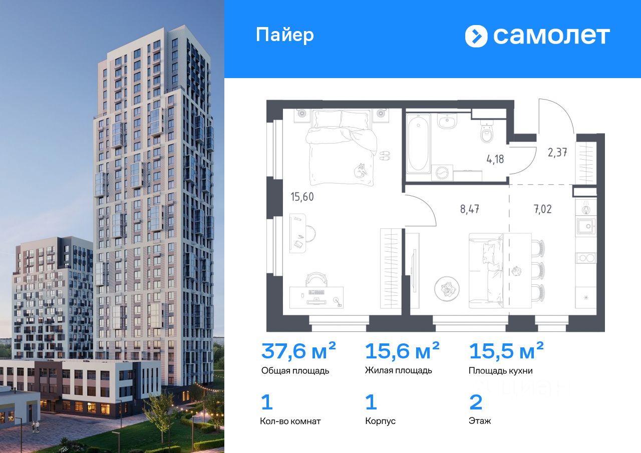 Строим кварталы для жизни с заботой о будущем. Предлагается 1-комнатная квартира комфорт-класса 37,64 кв.м в корпусе 1 на 2 этаже, в ЖК "Пайер"