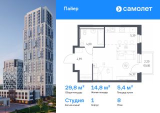 Строим кварталы для жизни с заботой о будущем. Предлагается квартира студия комфорт-класса 29,81 кв.м в корпусе 1 на 8 этаже, в ЖК "Пайер"