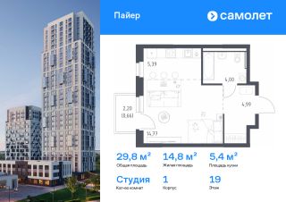 Строим кварталы для жизни с заботой о будущем. Предлагается квартира студия комфорт-класса 29,81 кв.м в корпусе 1 на 19 этаже, в ЖК "Пайер"