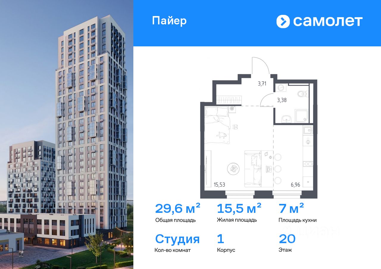 Строим кварталы для жизни с заботой о будущем. Предлагается квартира студия комфорт-класса 29,58 кв.м в корпусе 1 на 20 этаже, в ЖК "Пайер"