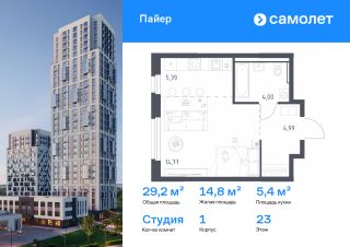 Строим кварталы для жизни с заботой о будущем. Предлагается квартира студия комфорт-класса 29,15 кв.м в корпусе 1 на 23 этаже, в ЖК "Пайер"