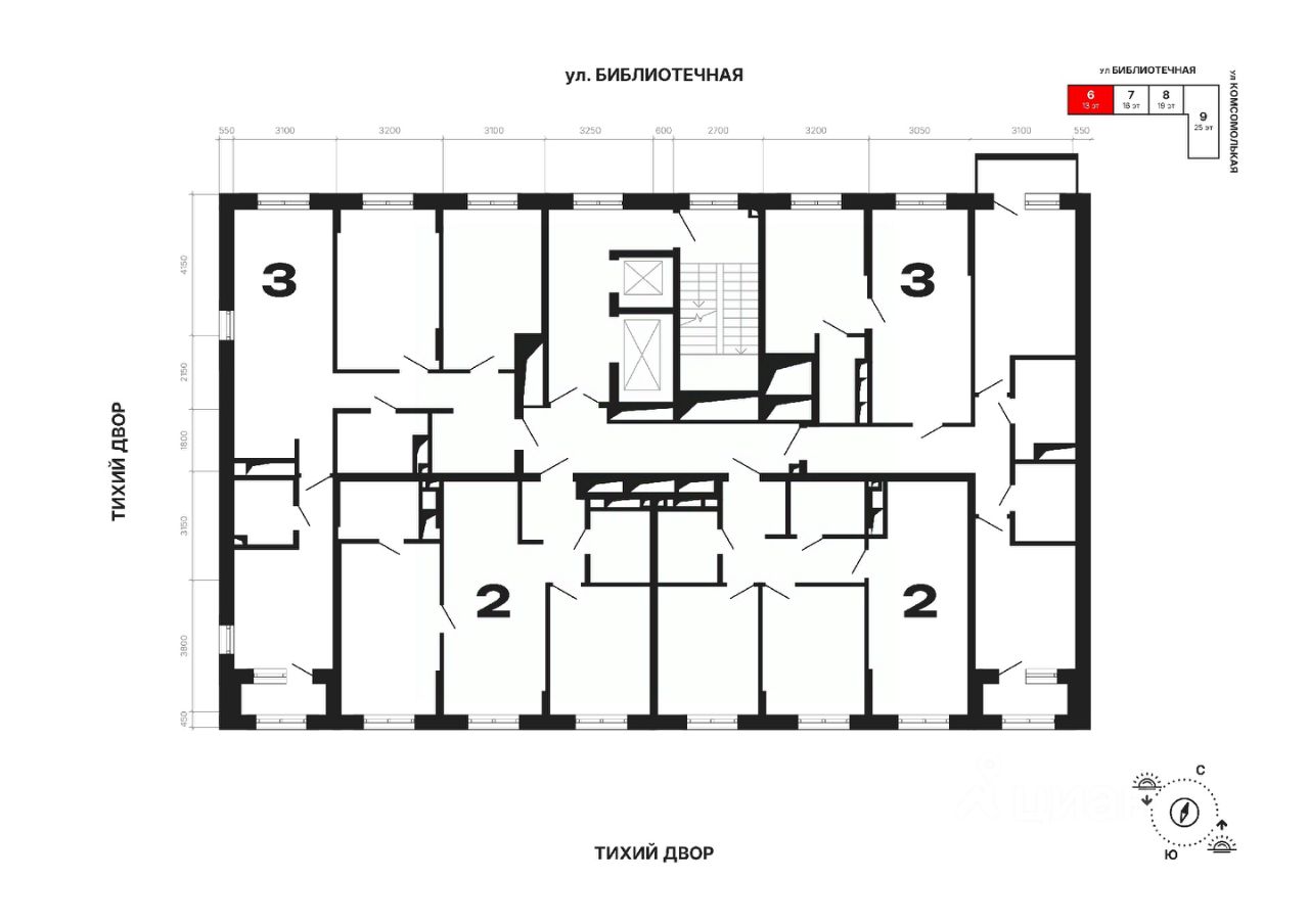 Дом монолитный, черырехподъездный, высотой 25 этажей. Квартира находится в 6-й секции в корпусе 1. На этаже 6 квартир. В подъезде 11 пассажирских и 1 грузовой лифт. Окончание строительства - 4 квартал 2028 года. Оформление сделки по договору долевого участия. #z6sfi6