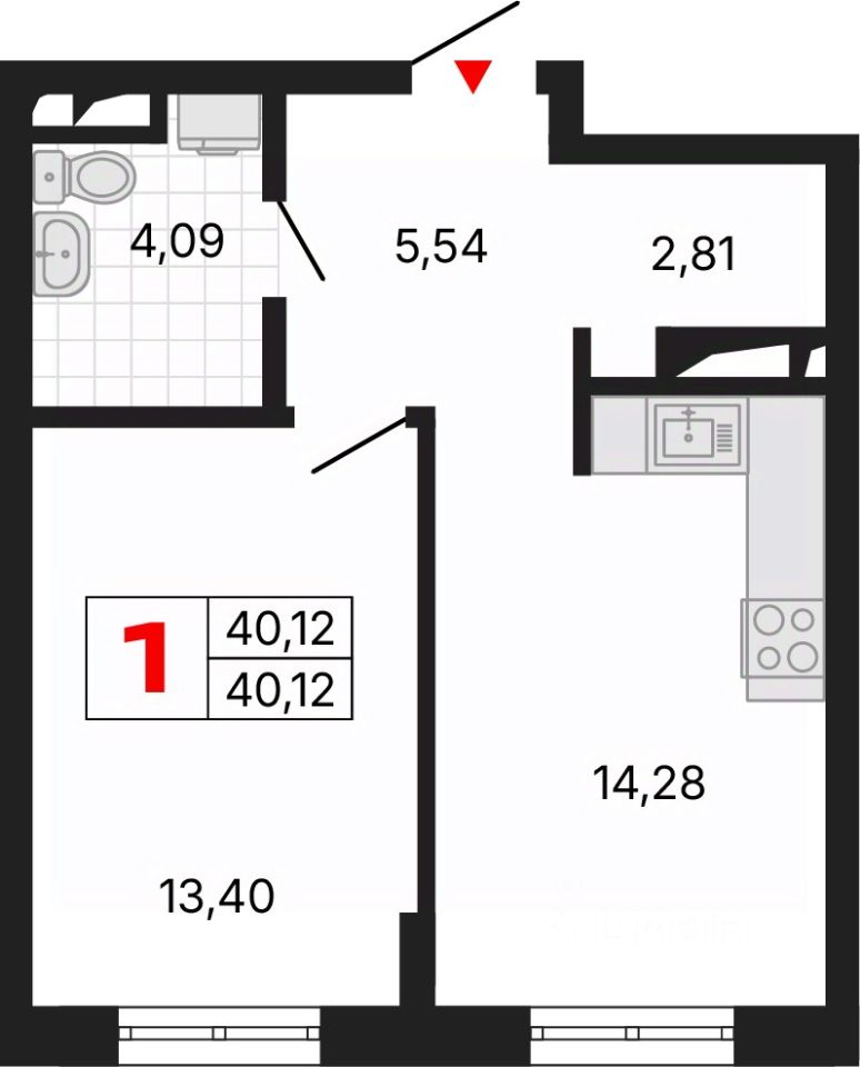 Просторная 1-комн. квартира с предчистовой отделкой в ЖК "Алиса" на 6 этаже. Общая площадь: 40.12 кв.м., жилая: 13.4 кв.м., площадь просторной кухни-столовой: 14.28 кв.м. Все окна выходят на одну сторону. В квартире один совмещенный санузел. Высота потолков 2.72 м.