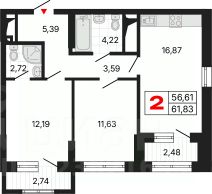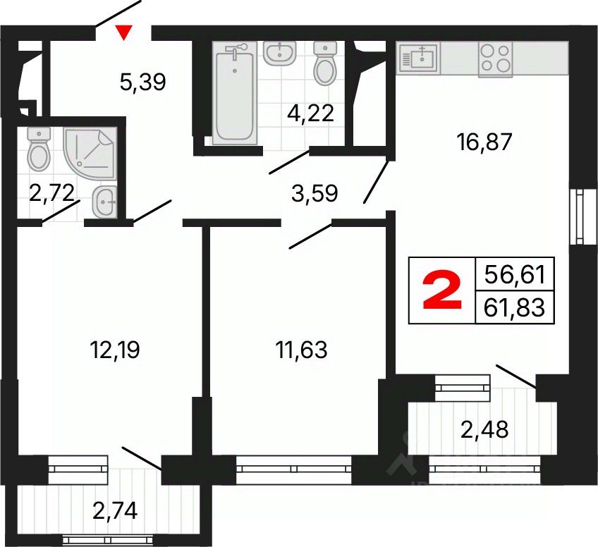 Продается 2-комн. квартира от застройщика с предчистовой отделкой в ЖК "Алиса" на 17 этаже. Общая площадь: 62.26 кв.м., жилая: 23.82 кв.м., площадь просторной кухни-столовой: 16.87 кв.м. Угловая квартира, очень светлая, естественная вентиляция при открытии окон. В квартире один балкон и одна лоджия, два совмещенных санузла. Высота потолков 2.72 м.