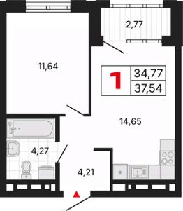 1-комн. квартира с предчистовой отделкой в ЖК "Милый дом" на 28 этаже. Общая площадь: 37.54 кв.м., жилая: 11.64 кв.м., площадь просторной кухни-столовой: 14.65 кв.м. Все окна выходят на одну сторону. В квартире одна лоджия, один совмещенный санузел. Высота потолков 2.7 м.