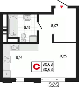 Однокомнатная квартира с предчистовой отделкой в ЖК "Милый дом" на 3 этаже. Общая площадь: 30.63 кв.м., жилая: 9.25 кв.м., площадь кухни: 8.16 кв.м. Все окна выходят на одну сторону. В квартире один совмещенный санузел. Высота потолков 2.7 м.