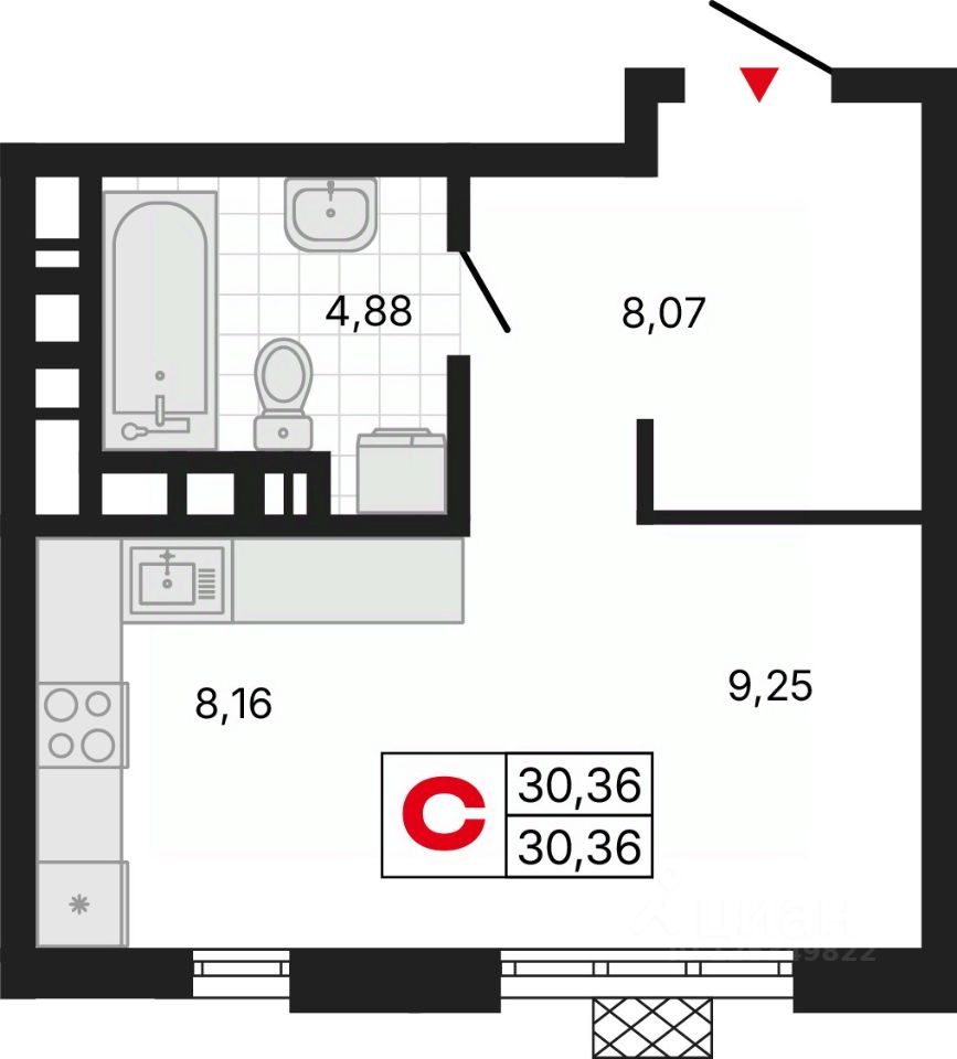 Продается 1-комн. квартира с предчистовой отделкой в ЖК "Милый дом" на 17 этаже. Общая площадь: 30.36 кв.м., жилая: 9.25 кв.м., площадь кухни: 8.16 кв.м. Все окна выходят на одну сторону. В квартире один совмещенный санузел. Высота потолков 2.7 м.