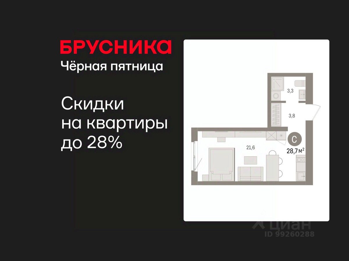 Студия в Южных кварталах. Особенности планировки: предчистовая отделка.
