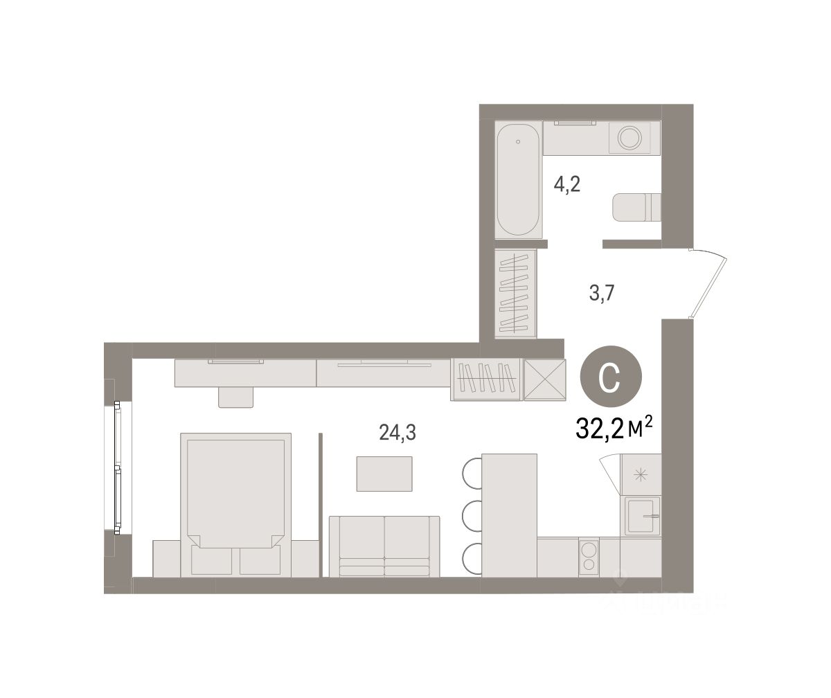Студия в Южных кварталах. Особенности планировки: предчистовая отделка.