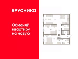 Квартира с кухней-гостиной и двумя спальнями в Южных кварталах. Особенности планировки: предчистовая отделка.