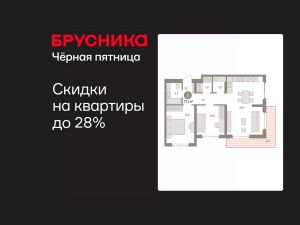 Квартира с кухней-гостиной и двумя спальнями в Южных кварталах. Особенности планировки: гардеробная, разнесённые спальни, предчистовая отделка, постирочная, балкон.