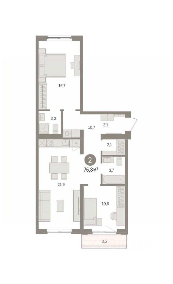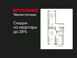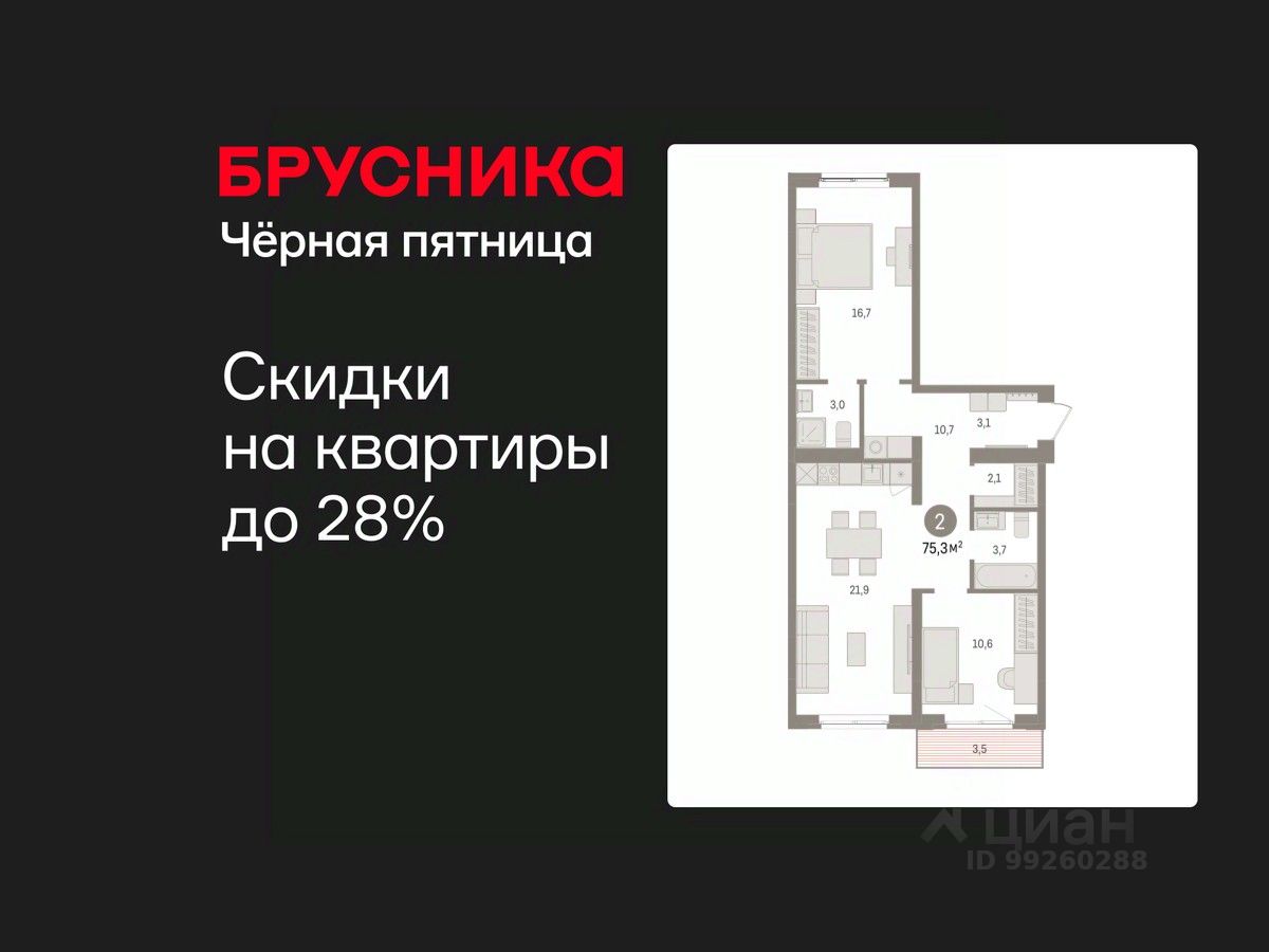 Квартира с кухней-гостиной и двумя спальнями в Южных кварталах. Особенности планировки: окна на две стороны, гардеробная, вид во двор, разнесённые спальни, предчистовая отделка, мастер-спальня, балкон.