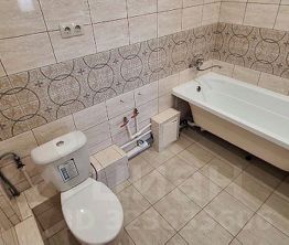 В санузле сделан хороший ремонт: настенная и напольная плитка из современных и качественных материалов, хорошая сантехника.