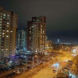 *Застеклённая лоджия с панорамным видом на городской пейзаж и двумя видовыми точками: