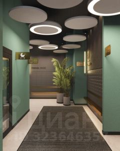 Интерьер вестибюля с кофейней, камином и панорамными видами выполнен в благородных приглушенных тонах с авторским панно из мозаики.