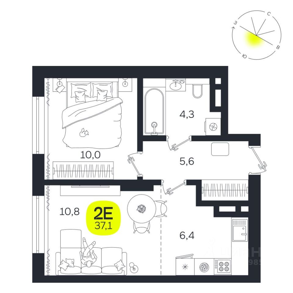 Общая площадь37,1 м²