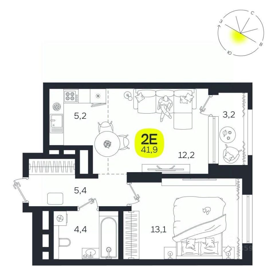 Общая площадь41,9 м²