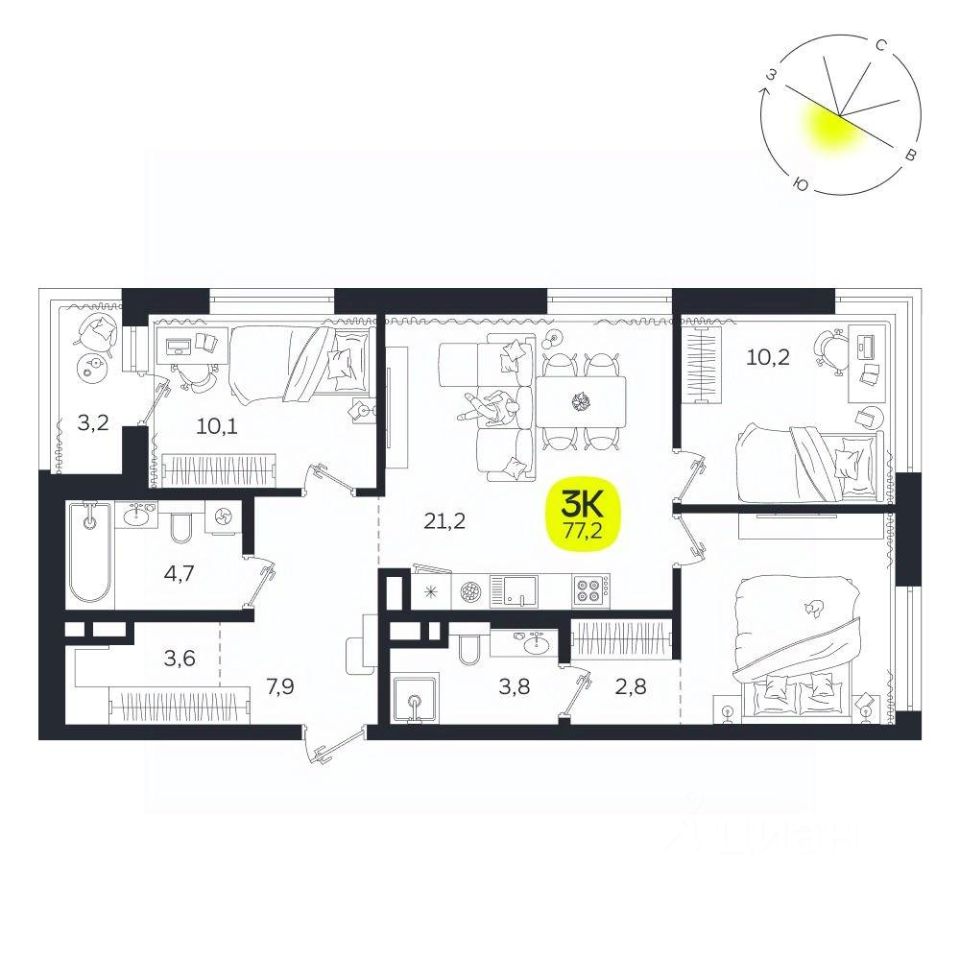 Общая площадь77,2 м²