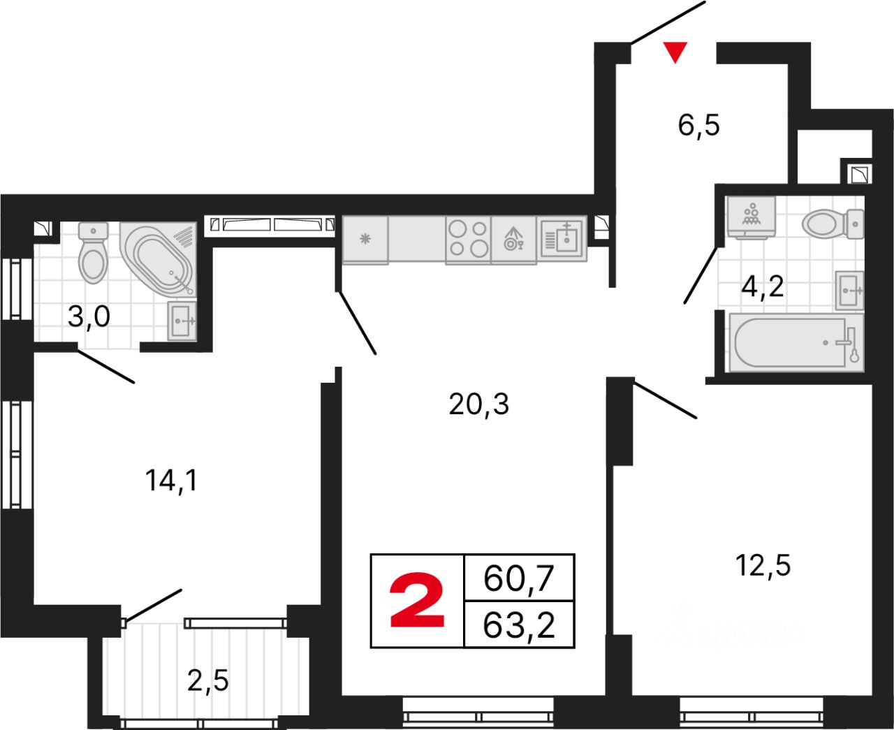 Продаётся квартира в Квартал-парк "Каменные палатки" от застройщика BAZA Development (покупка квартиры защищена банком). 2-комнатная квартира, 63,29 м², 29, 4 очередь, 13 секция. Стоимость указана с учетом отделки white box.