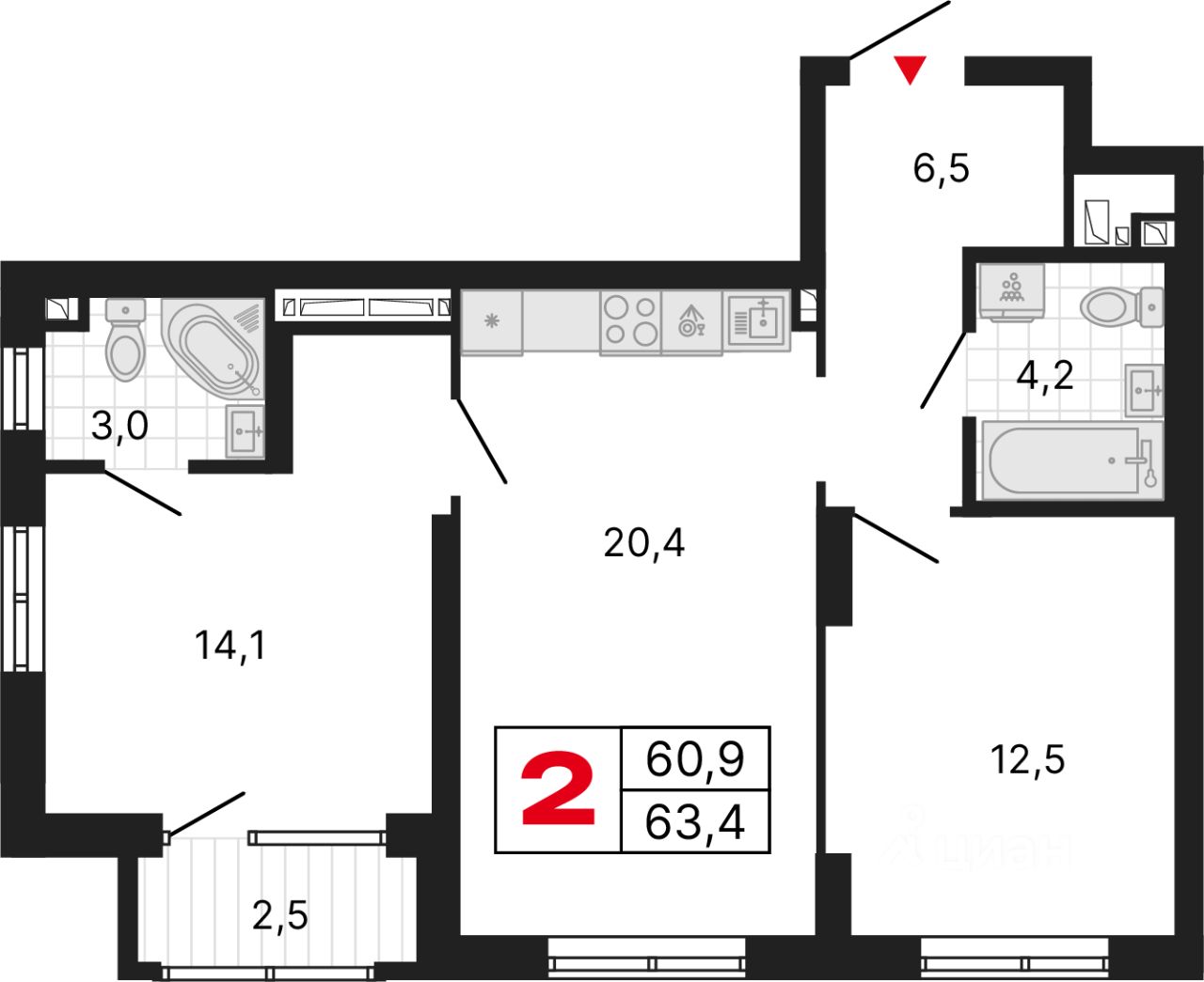 Продаётся квартира в Квартал-парк "Каменные палатки" от застройщика BAZA Development (покупка квартиры защищена банком). 2-комнатная квартира, 63,49 м², 101, 4 очередь, 13 секция. Стоимость указана с учетом отделки white box.