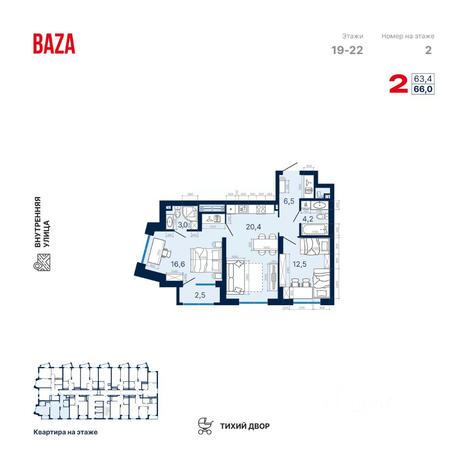 Продаётся квартира в Квартал-парк "Каменные палатки" от застройщика BAZA Development (покупка квартиры защищена банком). 2-комнатная квартира, 66 м², 206, 4 очередь, 13 секция. Стоимость указана с учетом отделки white box.