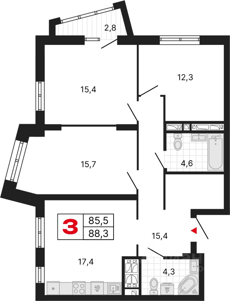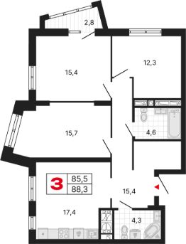 Продаётся квартира в Квартал-парк "Каменные палатки" от застройщика BAZA Development (покупка квартиры защищена банком). 3-комнатная квартира, 88,37 м², 207, 4 очередь, 13 секция. Стоимость указана с учетом отделки white box.
