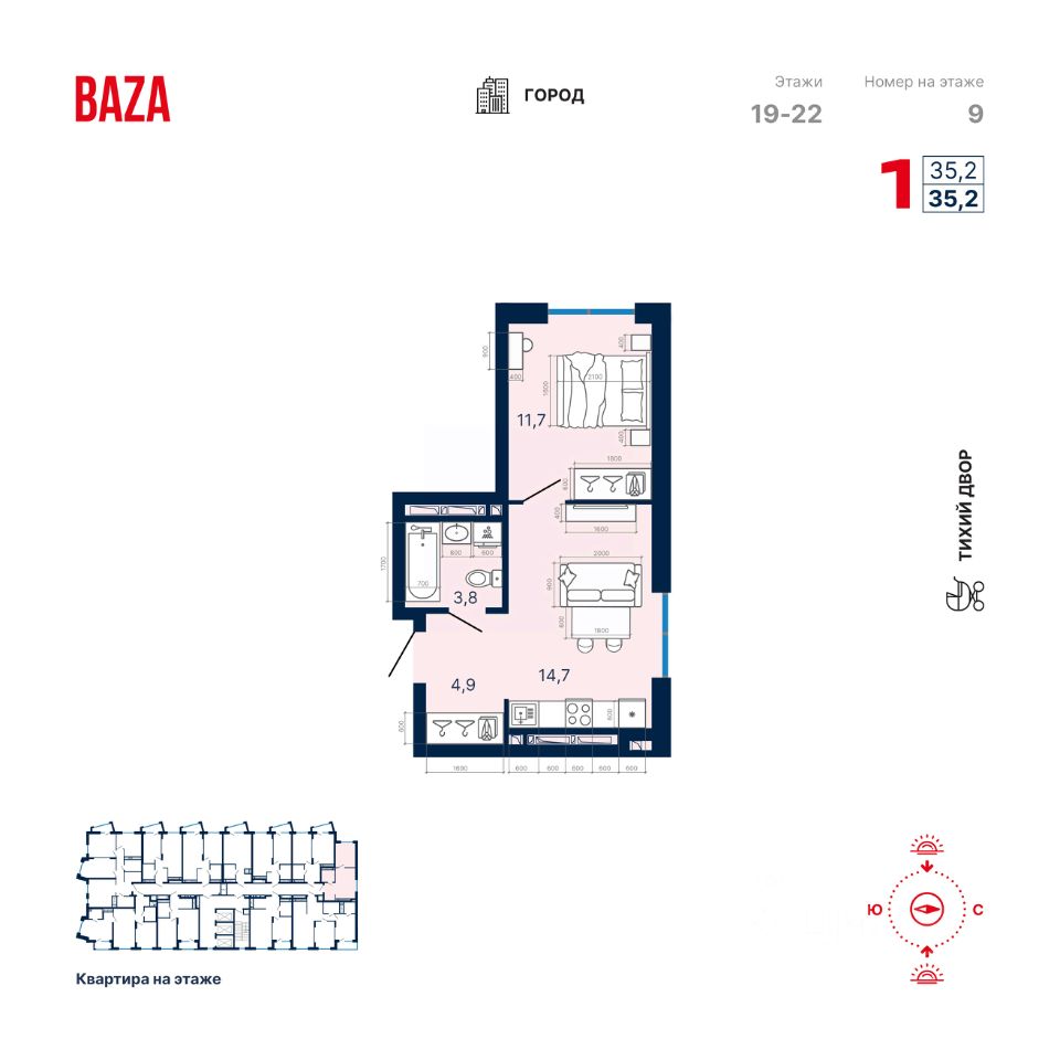 Продаётся квартира в Квартал-парк "Каменные палатки" от застройщика BAZA Development (покупка квартиры защищена банком). 1-комнатная квартира, 35,29 м², 213, 4 очередь, 13 секция. Стоимость указана с учетом отделки white box.