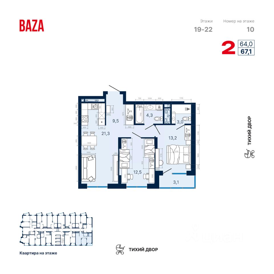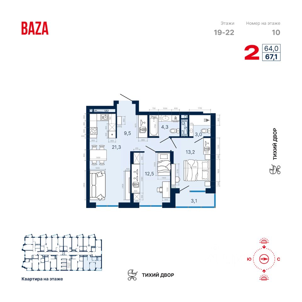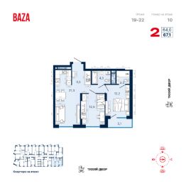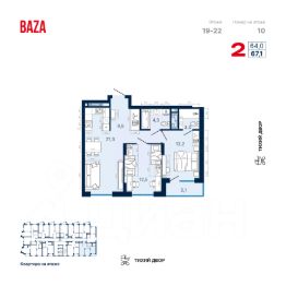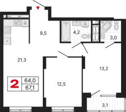 Продаётся квартира в Квартал-парк "Каменные палатки". 4 очередь, 13 секция. 2-комнатная квартира, 67,11 м², 214. Стоимость указана с учетом отделки: чистовая.