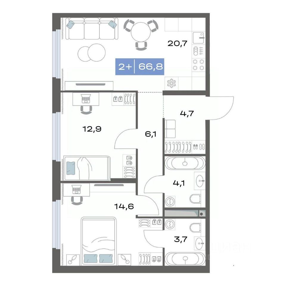 Продаётся 2-комнатная квартира в строящемся доме (Корпус 1.4), срок сдачи: III-кв. 2026, общей площадью 66.8 кв.м., на 3 этаже. Новый жилой комплекс "Толк Академический" от застройщика "СЗ Капитан" расположен по адресу: г. Екатеринбург, улица Академика Парина.